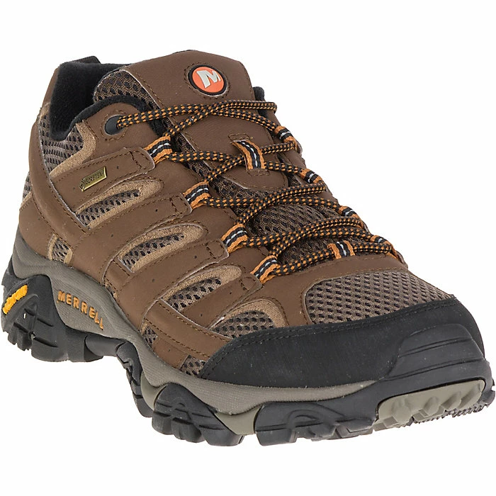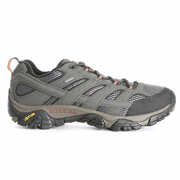 The Merrell Men’s MOAB 2 Gore-Tex Shoe is a low-cut hiking shoe made for comfort and performance on wide range of trail conditions. A waterproof GORE-TEX membrane seals out moisture, and the breathable mesh upper is overlayed with synthetic leather for support and enhanced durability. The Vibram TC5+ outsole provides reliable all-terrain traction while the cushioned EVA midsole and shock-absorbing heel team up for all-day comfort.