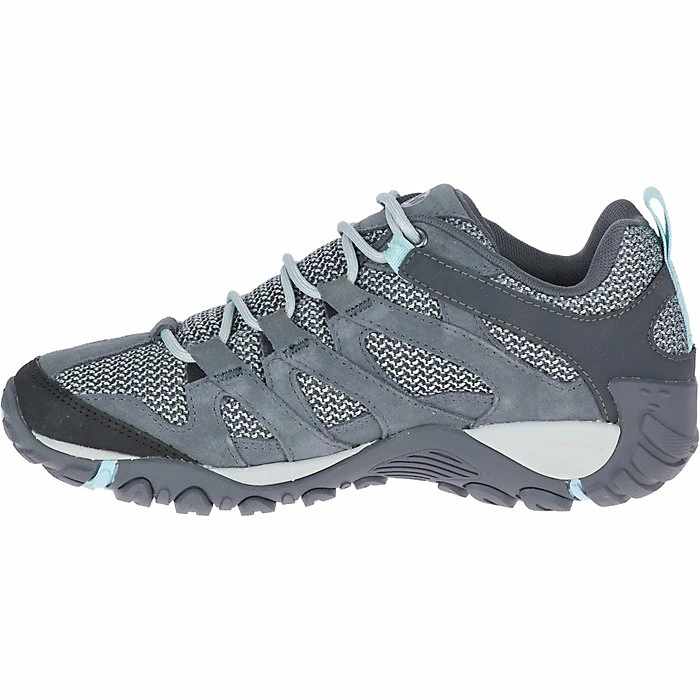 The Merrell Women’s Alverstone Boot is a lightweight hiking shoe made for going the distance in warm weather. The upper features a mix of durable suede leather and mesh, and a breathable mesh lining to helps keep your feet cool and comfortable out there. A shock-absorbing Air Cushion heel and molded EVA midsole provide comfort over the long haul, and a nylon arch shank provides underfoot protection against roots and jagged rocks on the trail.